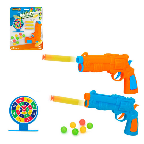 19715 PISTOLA LANCA DARDOS E BOLINHAS SNIPER COM ALVO SRT COR 14 PCS