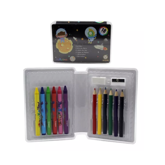 O kit escolar contém 18 Peças: