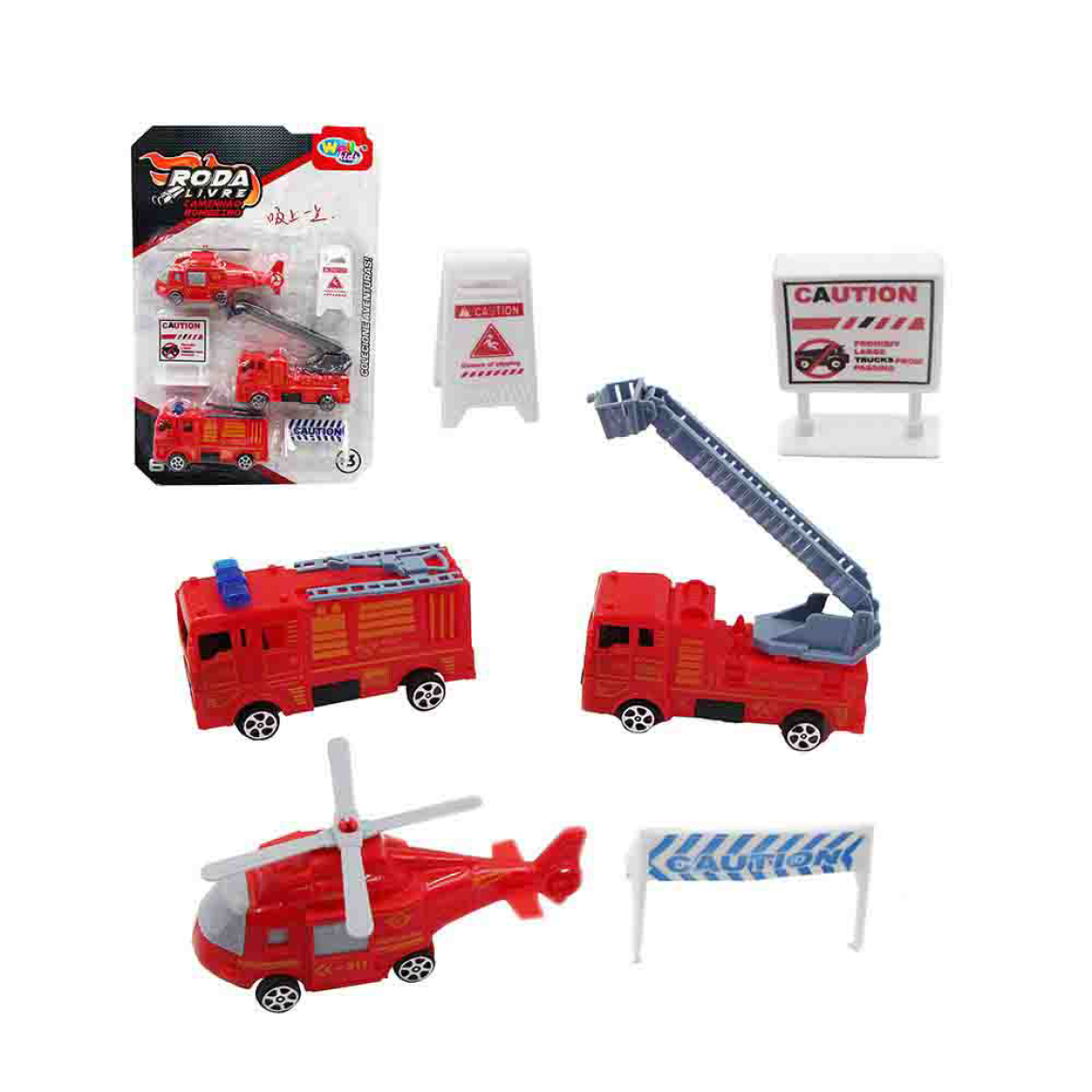 WB12379 CAMINHAO E HELICOPTERO DE BOMBEIRO EMERGENCIA NA RUA 6PCS WELLKIDS